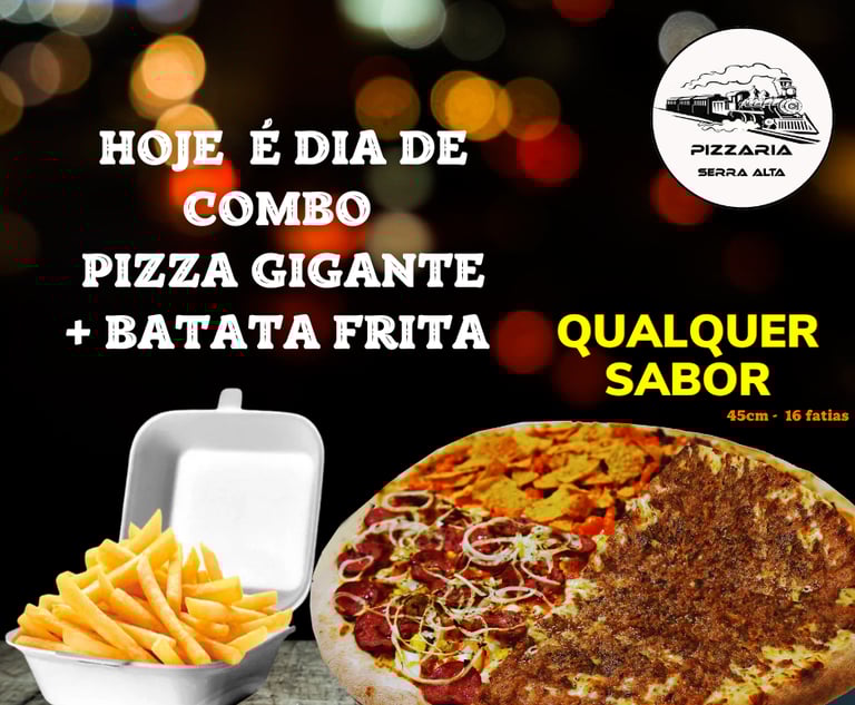 Descubra as deliciosas pizzas da Pizzaria Serra Alta, localizada no bairro Serra Alta em São Bento do Sul. Nosso cardápio conta com preço único, perfeito para quem ama qualidade e praticidade. O destaque fica por conta da incrível Pizza Vagão, com impressionantes 70 cm, ideal para compartilhar momentos especiais com amigos e família. Venha saborear nossas pizzas e vivenciar uma experiência única de sabor e tradição
